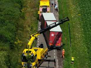 · Het voertuig moest uitwijken, en daardoor zakte het achterste deel van de combinatie zo ver in de greppel dat deze er niet meer uit kwam.