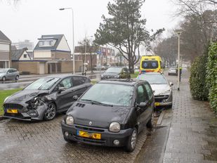 · Twee automobilisten kwamen met elkaar in botsing, en daardoor liepen twee geparkeerde auto's ook schade op.
