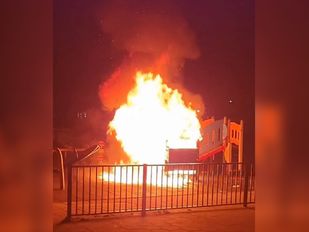 · "Wat een laffe en onzinnige daad om dit speeltoestel in brand te steken", schrijft de politie.