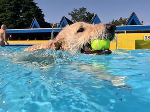 · Waar menig zwemliefhebber al bijna een week niet meer in buitenzwembaden terecht kan, hadden honden en hun baasjes deze zaterdag wél geluk.