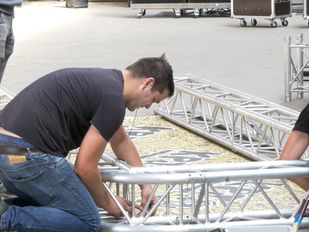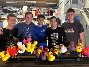 · Jop (18), Douwe (19), Luca (20), Rob (21) en Tjeerd (21) zijn met zijn vijven verantwoordelijk voor het ontwerp van de corsowagen van buurtschap 't Kapelleke uit Zundert.