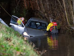 · Voorbijgangers hadden in een sloot langs de Krommeweg een auto gevonden, en het was niet duidelijk of er nog iemand in het voertuig zat.