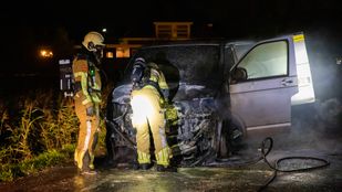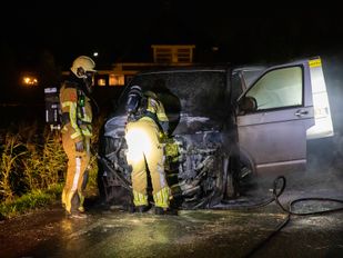 · De bestuurder van het voertuig ontdekte de brand zondagnacht. De voorkant van de bedrijfswagen raakte zwaar beschadigd.