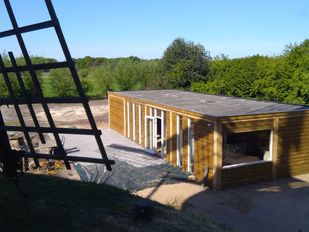 · Na ruim een half jaar hard werken is het nieuwe informatiecentrum bij molen Johanna in Huijbergen bijna klaar voor gebruik.