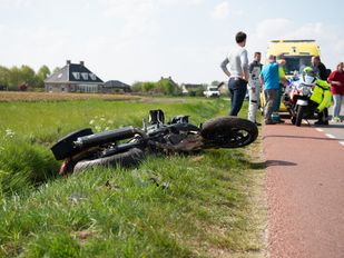 · De motorrijder kwam door het ongeval aan de andere kant van de sloot terecht. Buurtbewoners hebben hem terug naar de overkant geholpen.