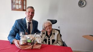 · Vanwege haar 103-jarige leeftijd kwam burgemeester Aard-Jan Moerkerke langs om haar te feliciteren.