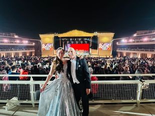 · Al sinds 2019 danst het stel tijdens de concerten van de orkestleider. Afgelopen weekend dansten ze samen met nog 149 koppels in Bahrein.