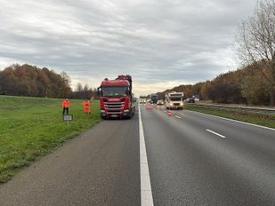 · De rechterrijstrook was dicht en verkeer werd via de linkerrijbaan langs de vrachtwagen geleid. De vertraging was ruim een half uur.