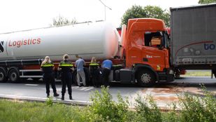 · Bij de botsing ontstond een flinke vloeistoflekkage. Hoe het ongeluk kon gebeuren is niet bekend. Er raakte niemand gewond.