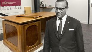 · Het kantoormeubel van oud-burgemeester en voormalig minister Herman Witte staat sinds zaterdag in de burgemeesterskamer van het stadhuis.