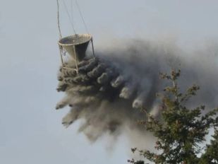 · Het gruis wordt vanuit de lucht verspreid over 31 hectare natuur van het landgoed. Dat gebeurt met een speciale helikopter.
