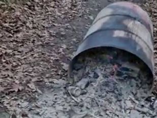 · In de bosrijke omgeving van landgoed Groot Molenbeek in Bergen op Zoom is zondagavond een ton met daarin nog smeulend vuurwerkafval gedumpt.