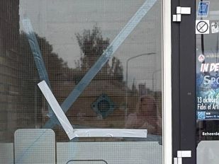 · De schade is enorm. Zo zijn de bosjes en de wegwijzers op de rotonde compleet zwartgeblakerd.