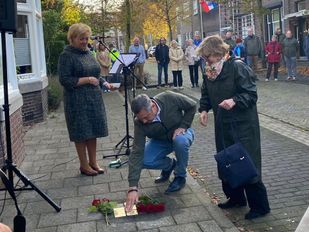 · Kunstenaar Günter Demnich heeft de stenen geplaatst in de Burgemeester Mathonstraat, in het bijzijn van nabestaanden van de Joodse verzetsman.