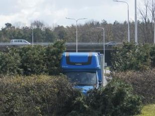 · Op het verkeersknooppunt Zoomland van de A58/A4 bij Bergen op Zoom is donderdagmorgen een bestelbusje gekanteld en van de weg geraakt.