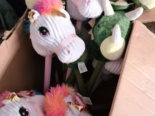 · Opmerkelijk was de vondst van een doos gevuld met stokpaardjes.