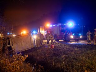 · Een busje kwam op zijn zijkant in een sloot terecht, een personenauto kwam op de vluchtstrook tot stilstand.