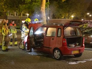 · De brandweer was er snel bij maar toch liep de auto veel schade op.