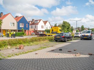 · De geparkeerde wagen was door de klap twintig meter opgeschoven.