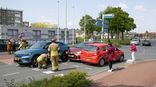 · Ambulancepersoneel heeft de inzittenden onderzocht maar er hoefde niemand naar het ziekenhuis. De kruising was tijdelijk afgesloten voor verkeer.