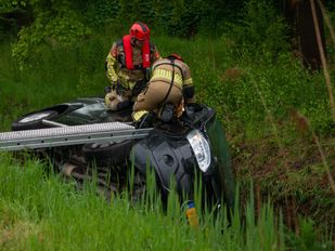 · Er raakte een vrouw bekneld. Agenten hebben laten weten dat zij aanspreekbaar was.