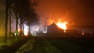 · De vlammen sloegen uit een loods van zo’n 15 bij 30 meter, met daarop zonnepanelen en ernaast een houtopslag gelegen.