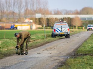 · De explosievenverkenningseenheid van de politie riep de Explosieven Opruimingsdienst Defensie erbij. Het bleek om een oude Nederlandse granaat te gaan.