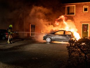 · Blussen moest met beleid gebeuren omdat ook de brandstof in de auto vlam had gevat. Brandstichting wordt niet uitgesloten.