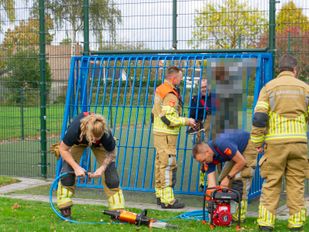· Er moest hydraulisch gereedschap aan te pas komen om hem te bevrijden uit zijn benarde positie.