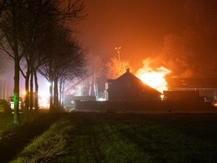 · De vlammen sloegen uit een loods van zo’n 15 bij 30 meter, met daarop zonnepanelen en ernaast een houtopslag gelegen.