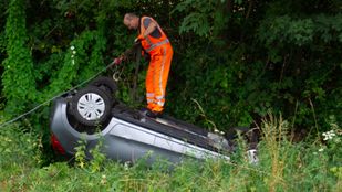 · De weg is enige tijd afgesloten geweest, zodat een bergingsbedrijf de auto op kon halen.