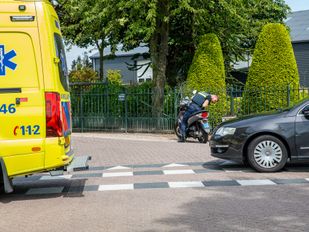 · De automobilist had de tweewieler niet gezien en zo ontstond een aanrijding. De man op de scooter is onderzocht door ambulancepersoneel en bleek gelukkig geen letsel te hebben.