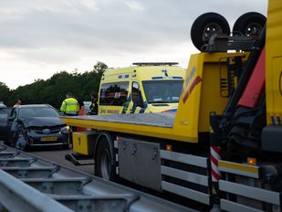Auto rijdt achterop vrachtwagen op snelweg bij Bergen op Zoom
