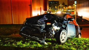 · Na de klap bleef een van de betrokken voertuigen schuin op het talud hangen.