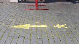 · Plots waren ze er. Op de trottoirs van de Bergse winkelstraten zijn dinsdag gele pijlen aangebracht, die een looprichting aangeven.