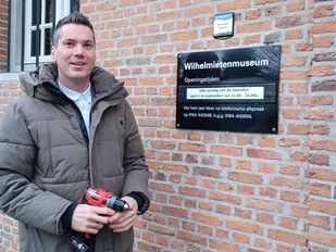 · Wethouder Jeffrey van Agtmaal heeft maandag het gemeentelijk monumentenschildje bevestigd op het poortgebouw van het Wilhelmietenmuseum in Huijbergen.
