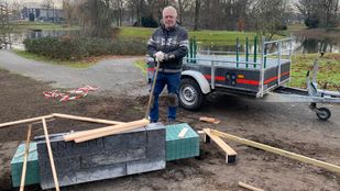 · De naamsteen van Anton van Duinkerken staat weer terug in het gelijknamige park in Bergen op Zoom. De Paul Brooijmans pakte de klus op.