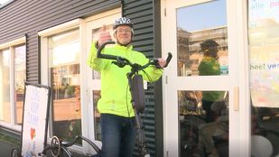 · Normaal rijdt Marcel Goudswaard met een groot advertentiebord achter zijn elliptigo, een revalidatiefiets waarbij de fietser rechtop staat. Normaal fietst hij rond met advertenties,…