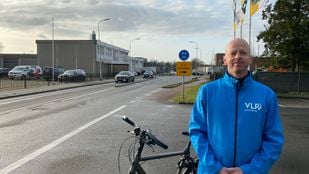 · Een fietspad langs de Leemstraat staat al langer op het wensenlijstje, vertelt het fractielid, terwijl een vrachtwagen langs davert. “Levensgevaarlijk!”
