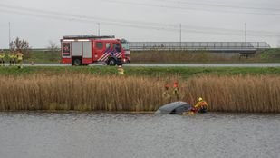 · Een bergingsbedrijf takelt de wagen momenteel uit het water. Daardoor is de A4, van Halsteren naar Bergen op Zoom, tijdelijk afgesloten.