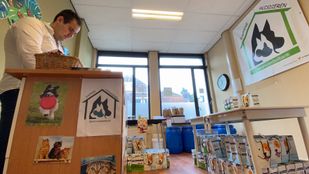 · "De krabpalen vliegen als zoete broodjes over de toonbank", aldus Angela Langejan van de Dappere Huisdieren, gevestigd in het oude politiebureau.
