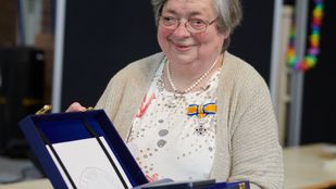 · Ze biedt al jaren een helpende hand bij de Zonnebloem. Burgemeester Han van Midden benoemde haar tot Lid in de Orde van Oranje-Nassau.