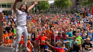 · Juvat Westendorp, bekend van GTST, verzorgt die dag de warming-up. Daarna leggen de kinderen een parcours van vijfhonderd tot elfhonderd meter af.