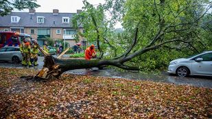 Boom waait om in Roosendaal en mist op het nippertje geparkeerde auto
