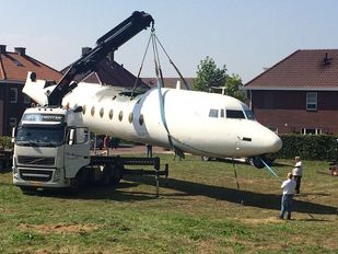 · Het Fokker F27 vliegtuig dat bij de bed & breakfast komt aan de Nijverheidsstraat in Hoogerheide is woensdag onder veel…
