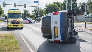 · Een bestelbus is maandagochtend op zijn kant terecht gekomen na een botsing met een personenauto. Bij het ongeluk raakte de…