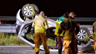 · De man kwam met zijn auto in de berm terecht en botste op twee verkeersborden. De auto belandde vervolgens op zijn kop.