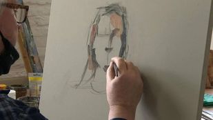 · Zorgmedewerkster Nelie Braspenning van tanteLouise in Bergen op Zoom neemt plaats op een stoel om door de schilder Mart Franken…