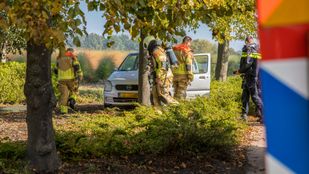 · De brandweer heeft de bestuurder uit zijn auto bevrijd. Hij is voor controle overgebracht naar het ziekenhuis.