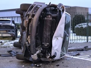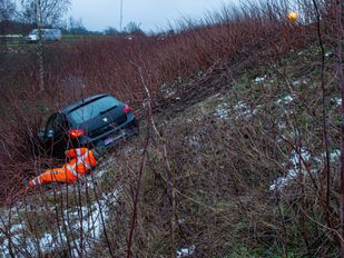 · Hoe de bestuurder precies op de vangrail terecht is gekomen, wordt nog onderzocht.
